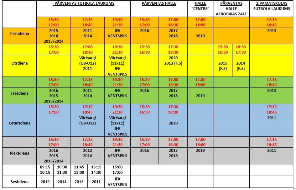 FS Ventspils treniņu grafiks no 5.01.2026.